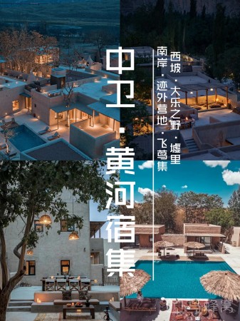 黄河宿集是指位于中卫的一片民宿区域,面朝黄河,背靠长城,黄河宿集刚好处于二者小小的夹角之中,四顾别有一番风景。黄河·宿集由五家设计师民宿品牌组成:墟里、大乐之野、飞蔦集、南岸和西坡,是中卫最早出圈的民宿群。他们把民宿建在沙坡头景区对岸,彼此相连,这样的经营方式乍听有些奇怪,但5家民宿风格和服务各不相同,就像是设计师对“黄河”这个主题的不同版本诠释,有的低调,有的唯美,有的张扬。