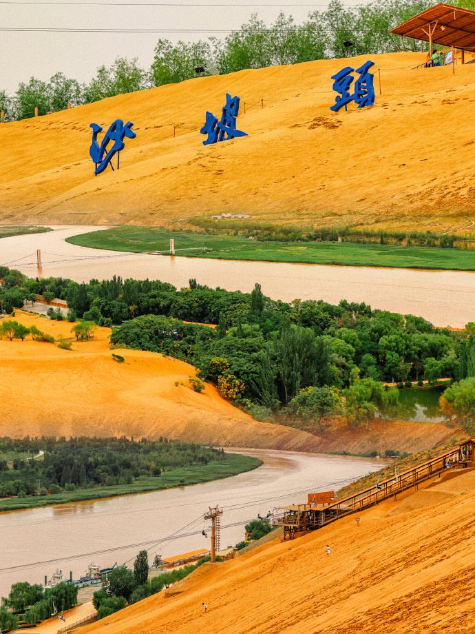 沙坡头旅游景区位于宁夏回族自治区中卫市,集大漠、黄河、高山、绿洲为一处,具西北风光之雄奇,兼江南景色之秀美。中卫沙坡头景区内有中国最大的天然滑沙场,有横跨黄河的“天下黄河第一索”,有黄河文化代表古老水车,有黄河上最古老的运输工具羊皮筏子,有沙漠中难得一见的海市蜃楼,可以骑骆驼穿越腾格里沙漠,可以乘坐越野车沙海冲浪,咫尺之间可以领略大漠孤烟、长河落日的奇观。